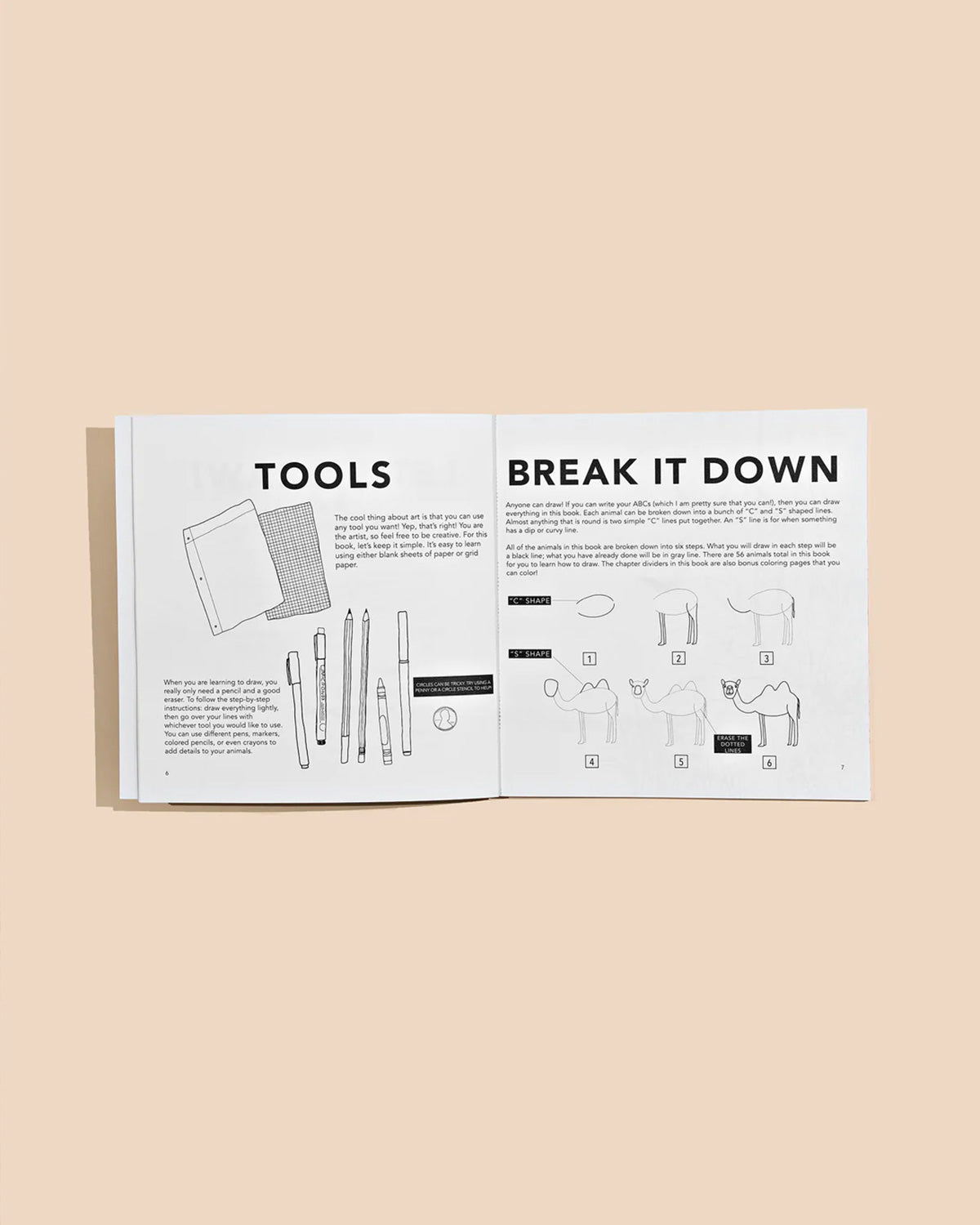 Includes 40+ projects for your kiddo to complete. This simple how-to-draw book truly incorporates ā€˜all the animals’ as drawing designs range from farm animals to forest critters, jungle beasts, and sea creatures. The wide array of projects partnered with easy step-by-step instructions ensure hours of creative fun for your little one!