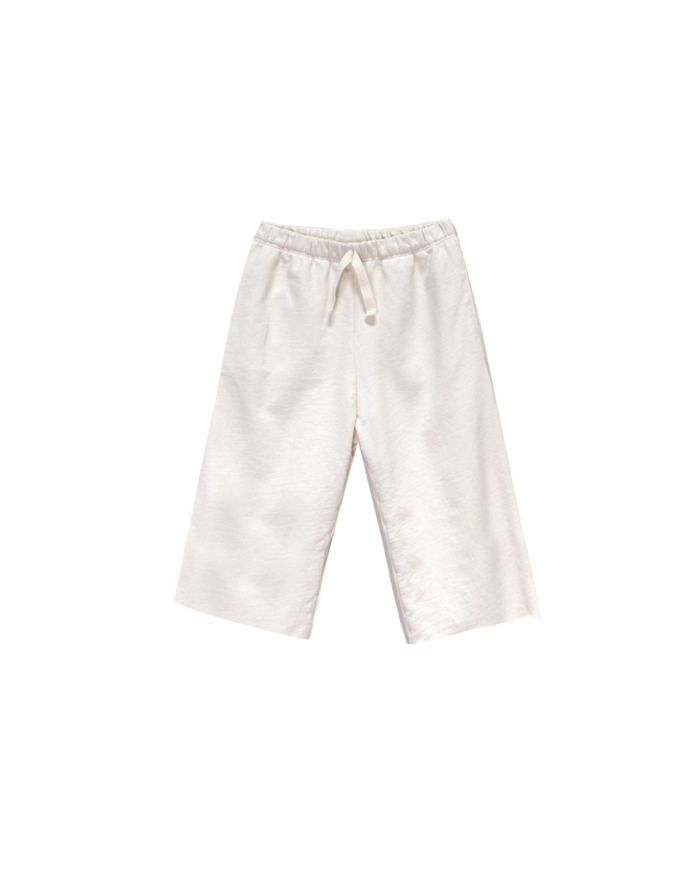 A French Terry Culotte, yes please! We really love the idea of neutral pieces for girls & boys to wear. Super comfy in our organic french terry with side seam pockets on both sides and raw edge hem. Elastic at waist and tacked natural twill at center.