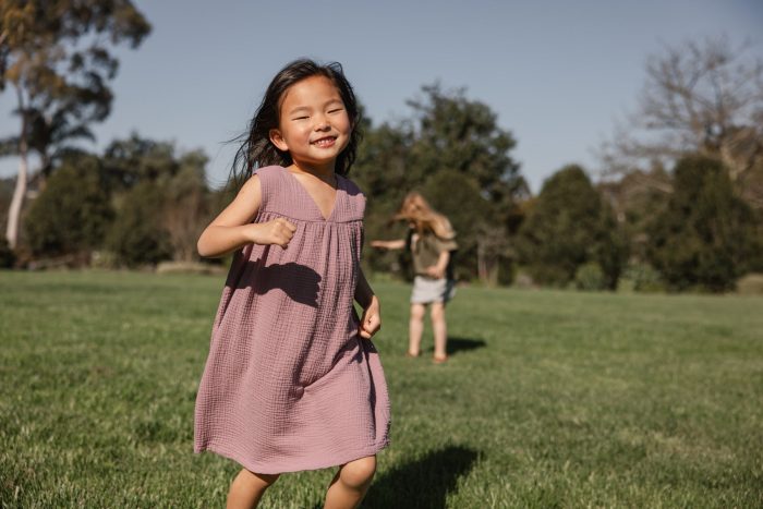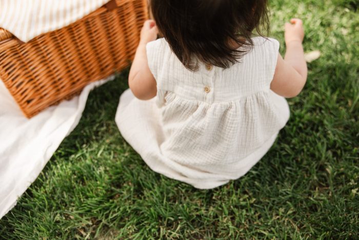 A super soft sundress made from airy organic cotton gauze — simple, sweet, and perfect for sunny days. This A-line silhouette features a gently shirred bodice front and back, with a center-back placket for easy changes on infant sizes.