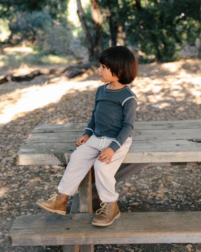 100% organic cotton super soft thermal with contrast natural stitching throughout seams. A simple garment but a customer favorite!