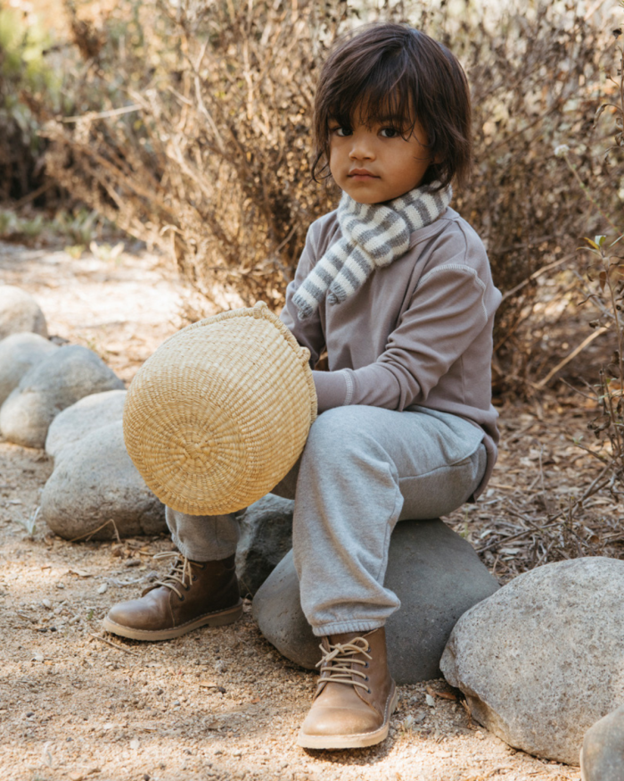 100% organic cotton super soft rib thermal with contrast natural stitching throughout seams. A simple garment but a customer favorite!