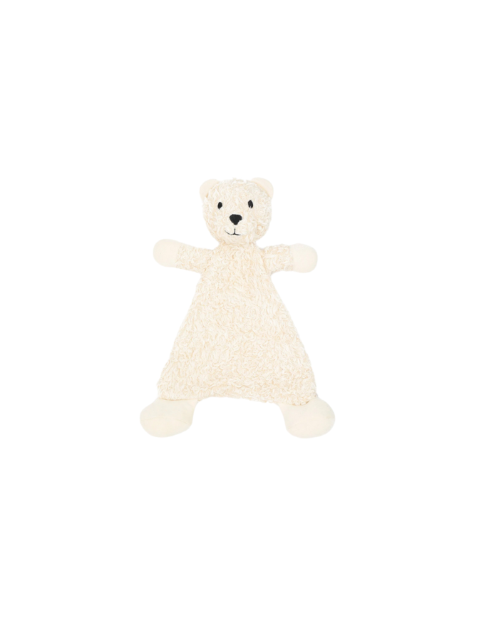 Best-selling floppy teddy bear toy that’s also sustainable and organic. Made for cuddling, this flat faux Sherpa Snuggle Bear Toy is the perfect friend for your toddler, featuring a “flat” body that is floppy, fun, and easy for little hands to hold. Lovingly made and stuffed with 100% certified organic Egyptian Cotton, environmentally-friendly baby Snuggle Bear toys are pure from the inside out.