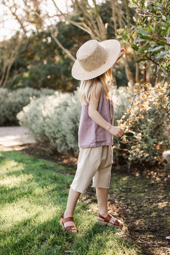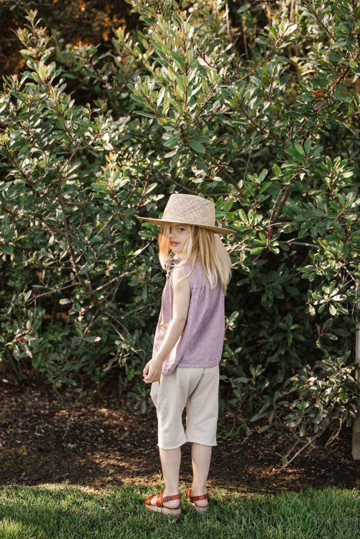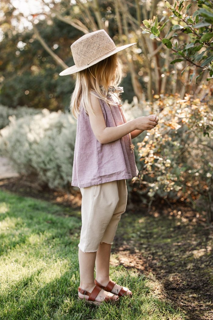 A classic and simple A- lined top made in organic cotton & hemp blend fabric with shirring at front and back bodice. 2 wooden buttons at center back placket.