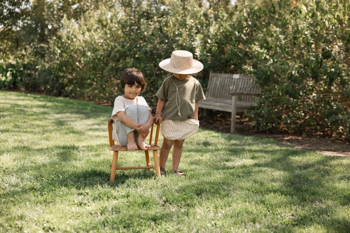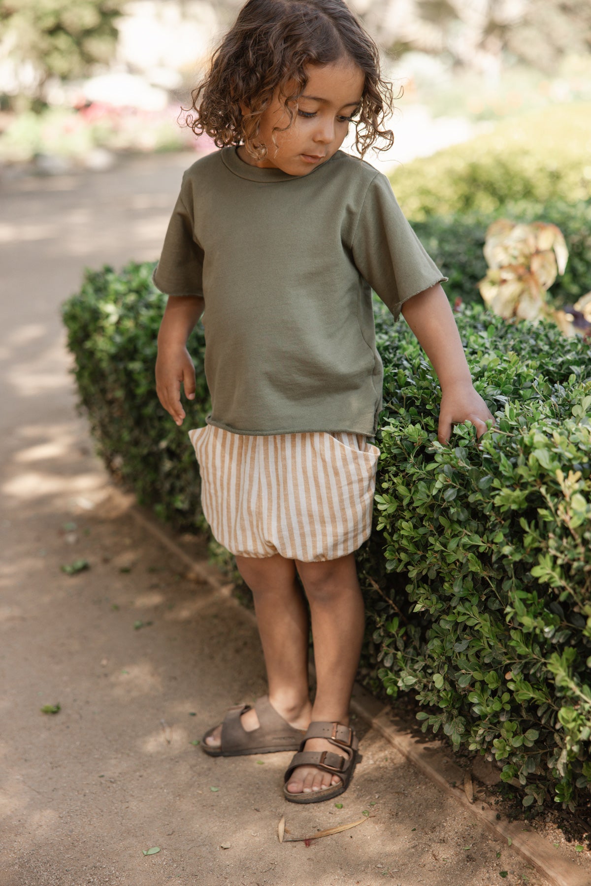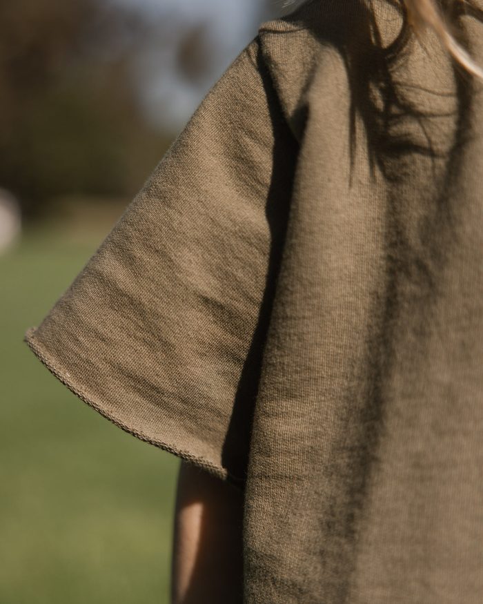 A t-shirt in French Terry, yes! Channeling the 70s on this one š We love the simplicity of the raw edge sleeves and hem. And yes darling on him or her!