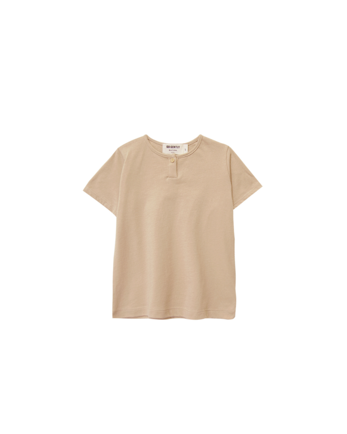 Always popular, our Jersey Henley has a small placket at center with a wooden button and jersey binding at neck.