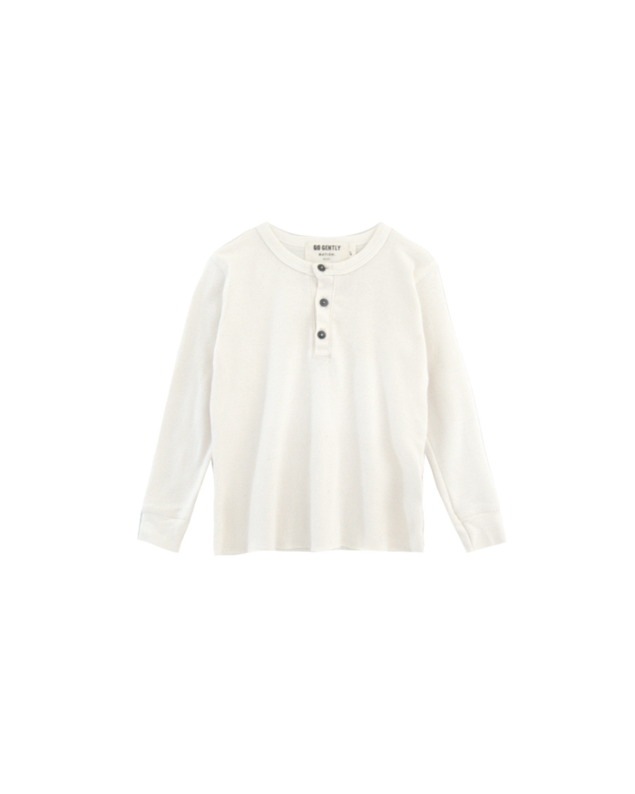 A simple rib henley that fits and feels like a thermal with a placket and 3 dark shell buttons and stitching detail at hem and shoulders.Ā So easy & comfortable!
