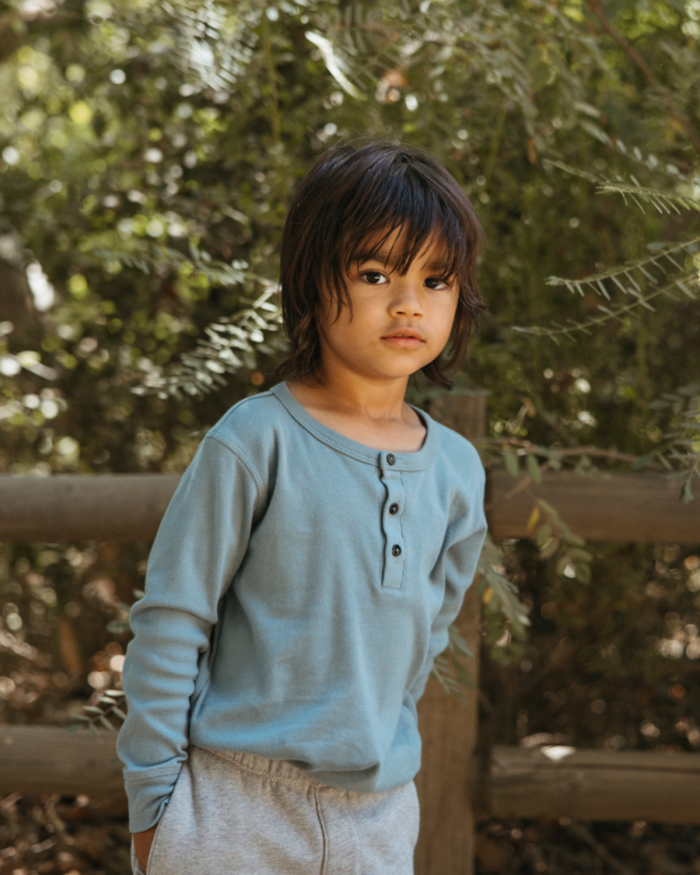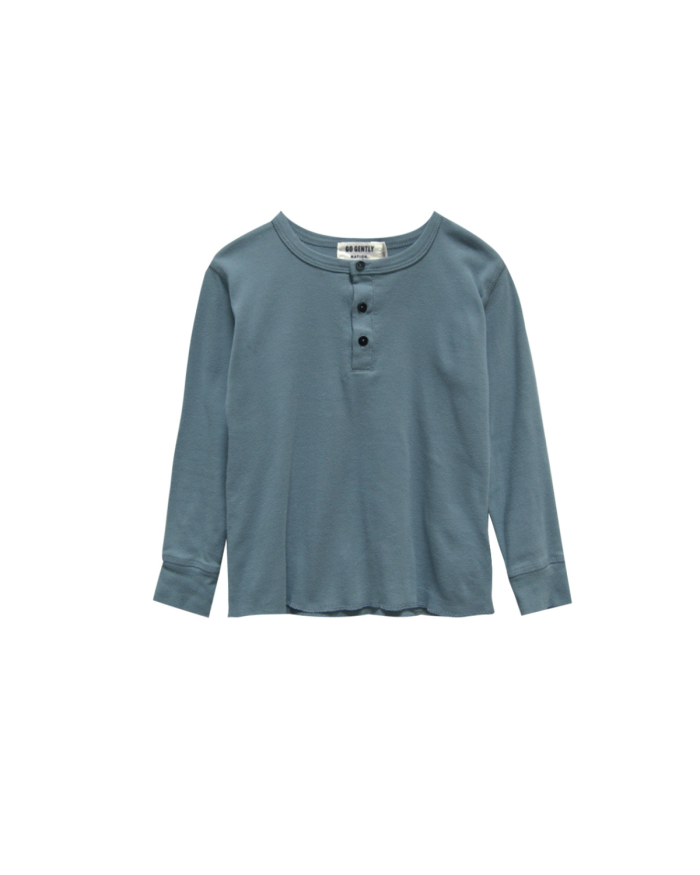 A simple rib henley that fits and feels like a thermal with a placket and 3 dark shell buttons and stitching detail at hem and shoulders.Ā So easy & comfortable!