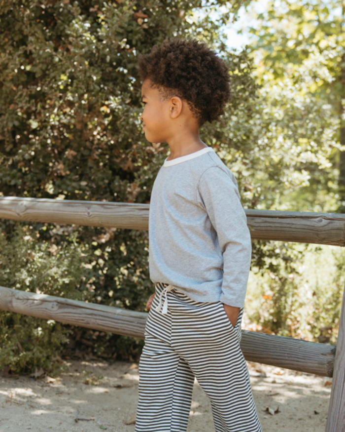 Inspired by a 70’s style tee. Our Vintage tee is made from heather gray jersey with contrast natural binding at neckband. A cool alternative to a standard tee this season