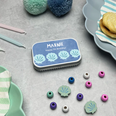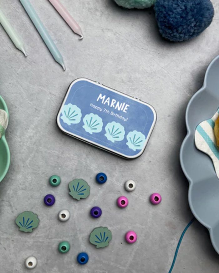 A beautiful gift tin containing elastic & beads to create a mermaid bracelet fit for any water-loving little girl. The elastic comes with hard ends to aid the beading process for young children. Then, patience & precision are all that’s required to assemble this piece.