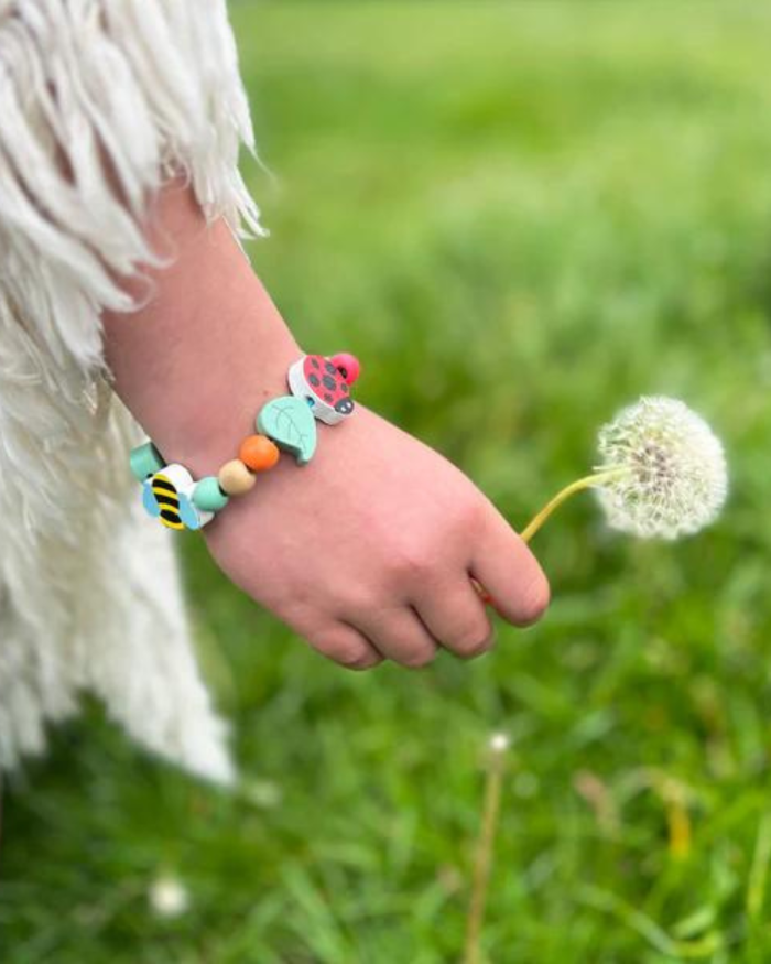 A beautiful gift tin containing elastic & beads to create a heart bracelet fit for a princess. The elastic comes with hard ends to aid the beading process for young children. Then, patience & precision are all that’s required to assemble this piece.