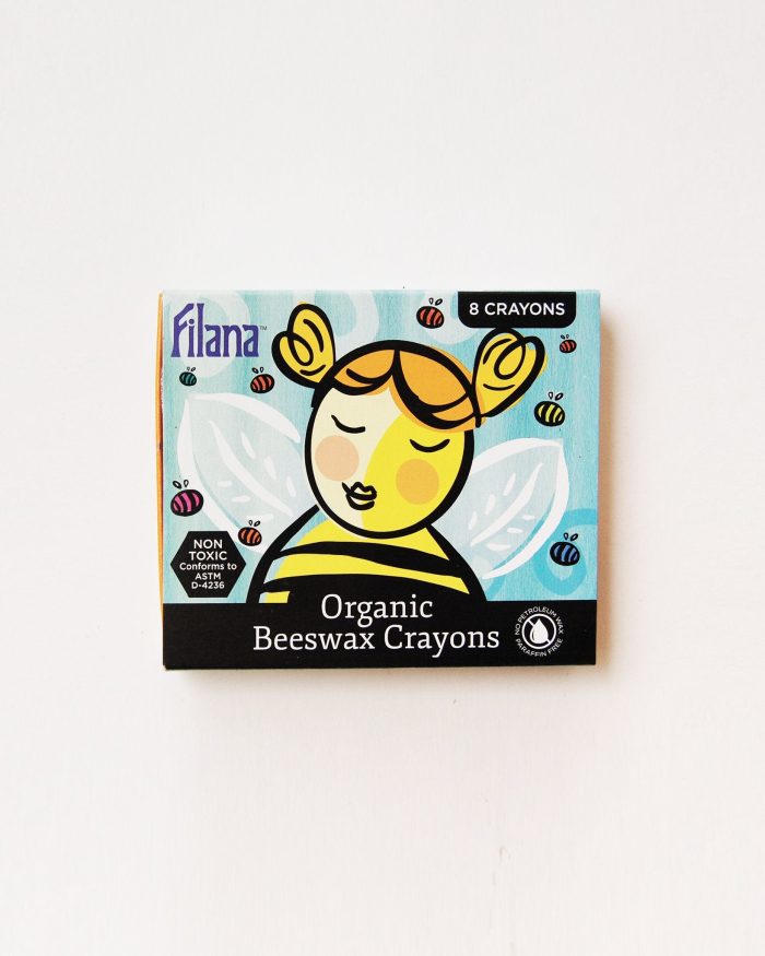 Most crayons are made from paraffin and petroleum wax in huge factories.Ā Filana crayons are hand poured in small batches using organic beeswax. Each block crayon is 1/2″ x 15/16″ x 1 11/16″. Packed in a colorful slider box made from recycled paper.