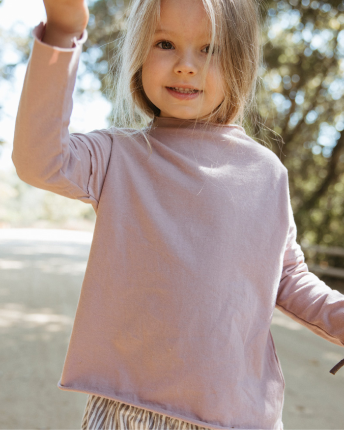 Our pullover style tee is a brand favorite for both Kids & Women! This soft little tee is a nice alternative to a traditional tshirt and feels so much more special! Raw edge hem and details.
