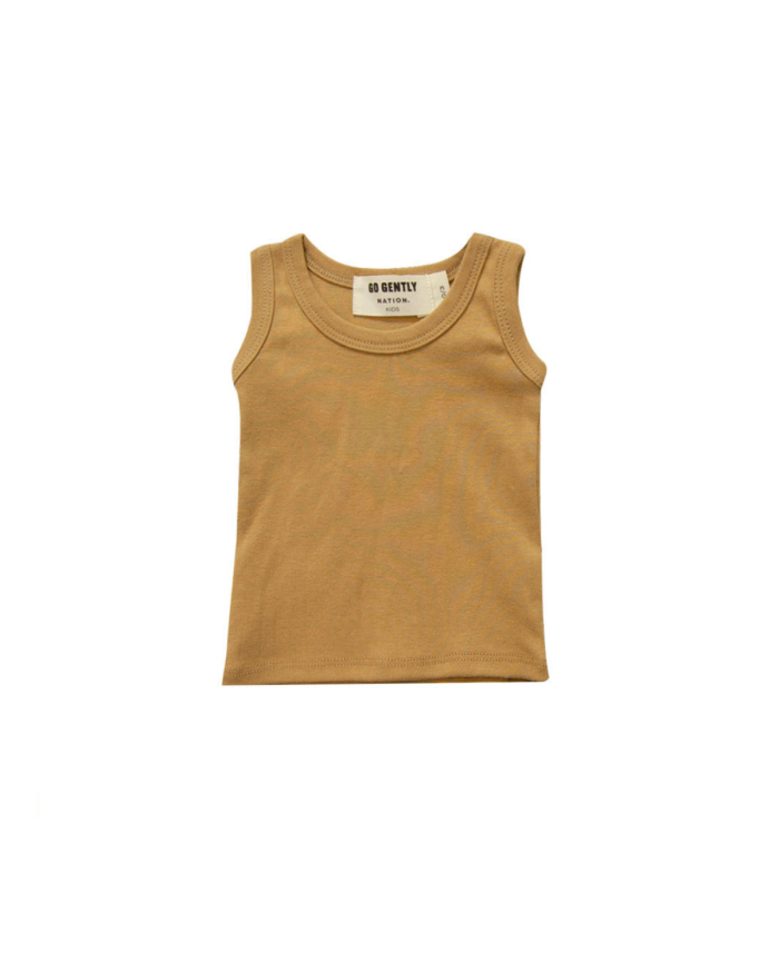 A simple little rib tank for hot summer days. Soft organic rib with rib binding at arms and neckline. Pairs great with our Rib Baby Pant!