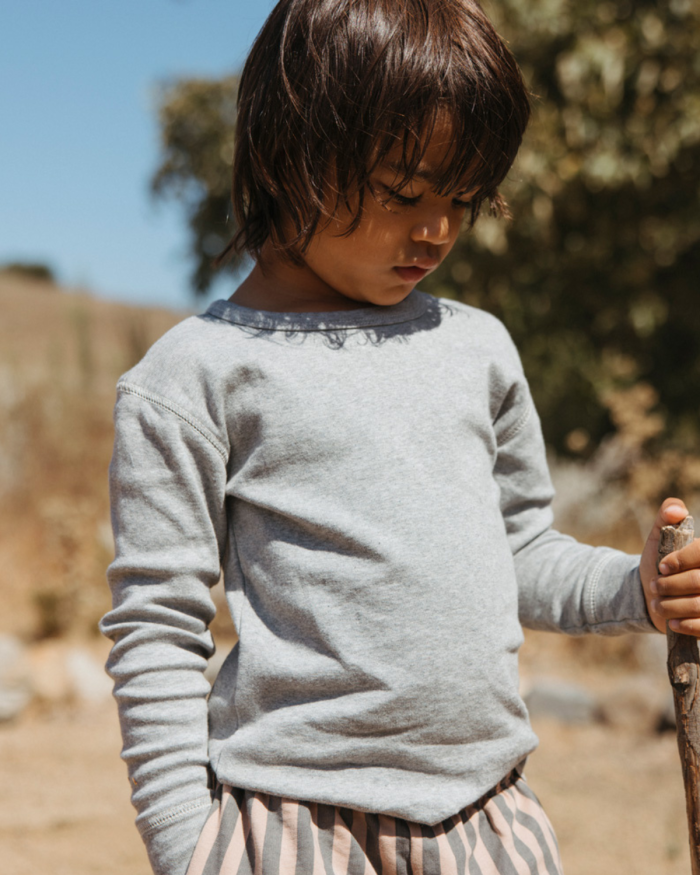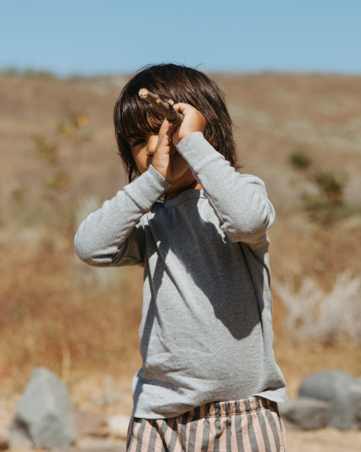 Super soft rib thermal with contrast natural stitching throughout seams. A simple garment but a customer favorite!