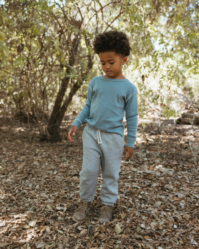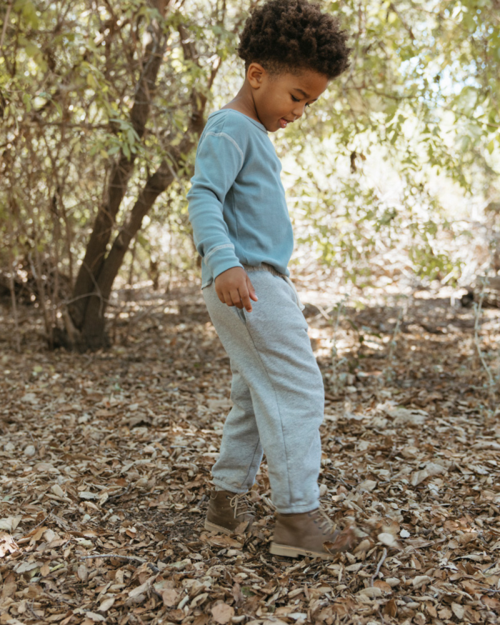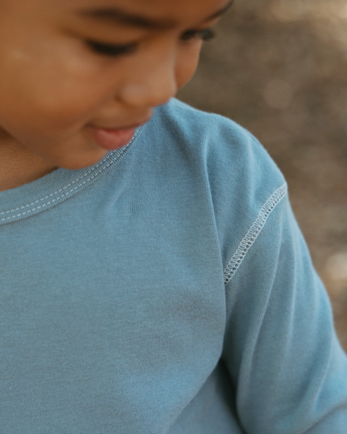 100% organic cotton super soft rib thermal with contrast natural stitching throughout seams. A simple garment but a customer favorite!