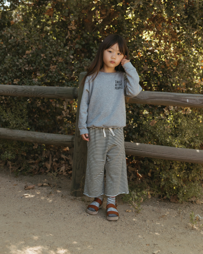 A comfy crewneck made from super soft fleece made from 50% organic cotton yarn/ 50% recycled cottonĀ  yarn with rib neckband, cuffs and waistband.Ā  A message that reads:Ā  Smile at the People