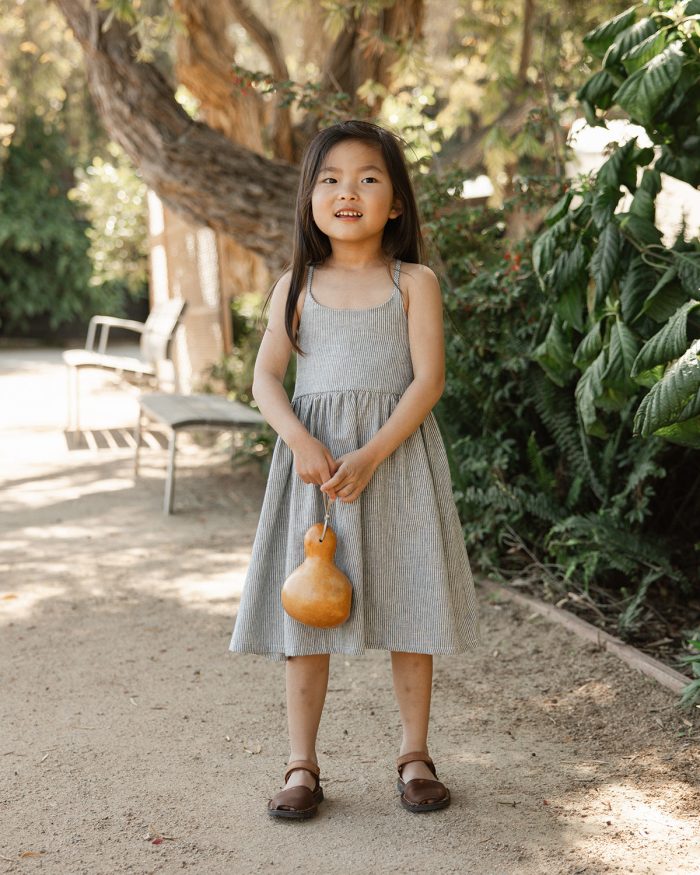 Summer fun in this playful and feminine woven summer dress!Ā  Made in our organic cotton/ hemp fabric. Ā Straps cross in the back with a small placket and wood buttons. A girly little dress that your girls are sure to love!
