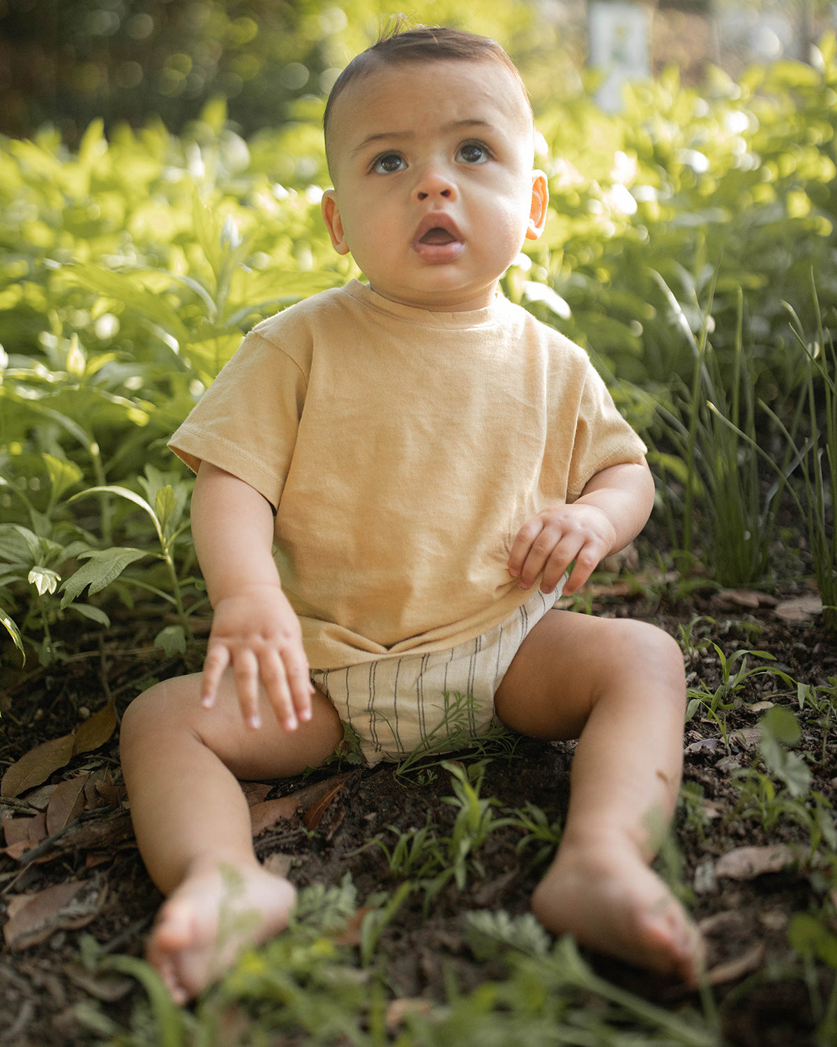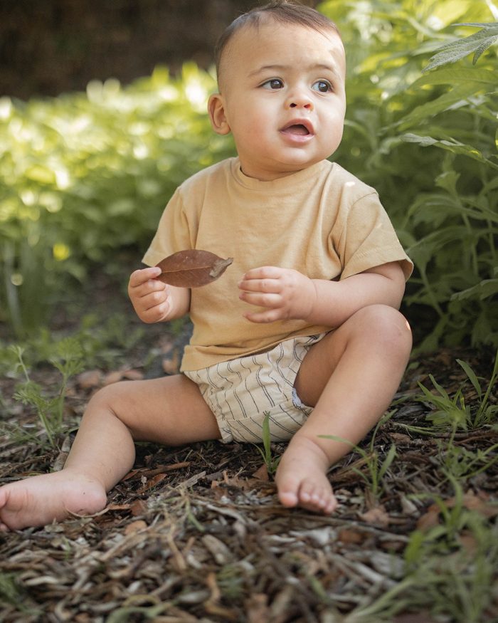 Bloomers are a versatile choice for baby boys & girls to be worn with tanks, tees, under dresses and a seasonless too.Ā We love them with tights underneath for colder weather. This simple bloomer has elastic at the waist and leg area.