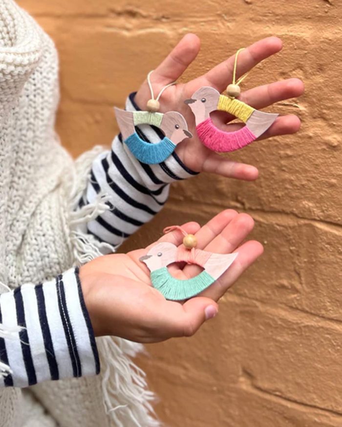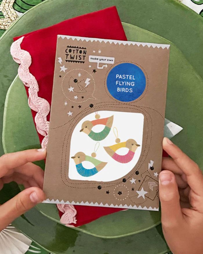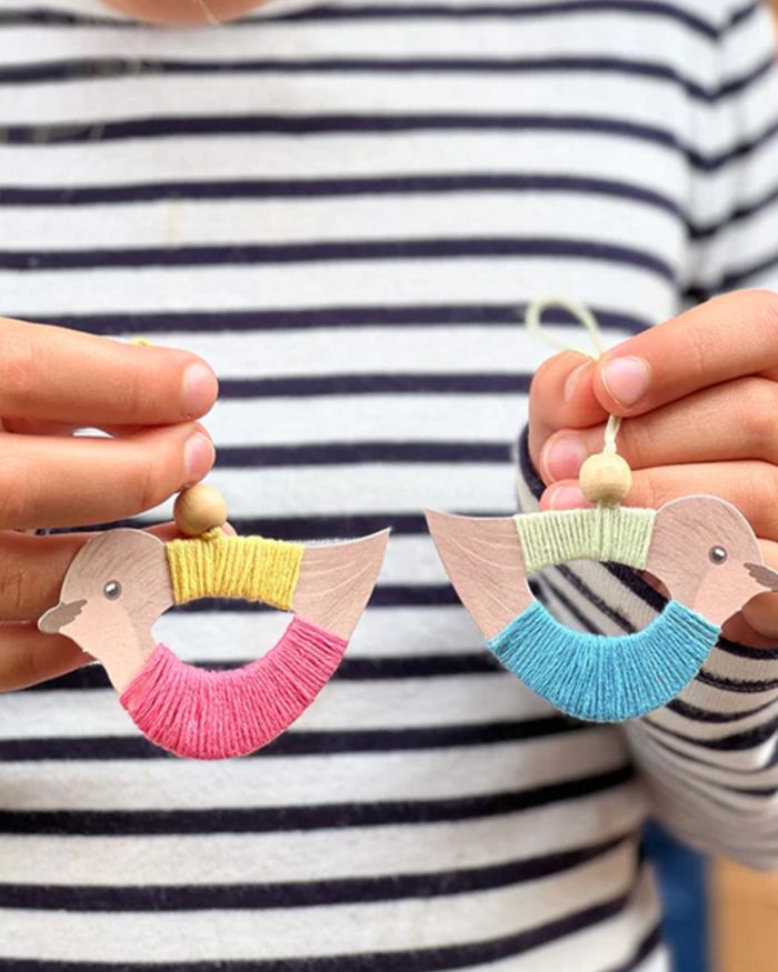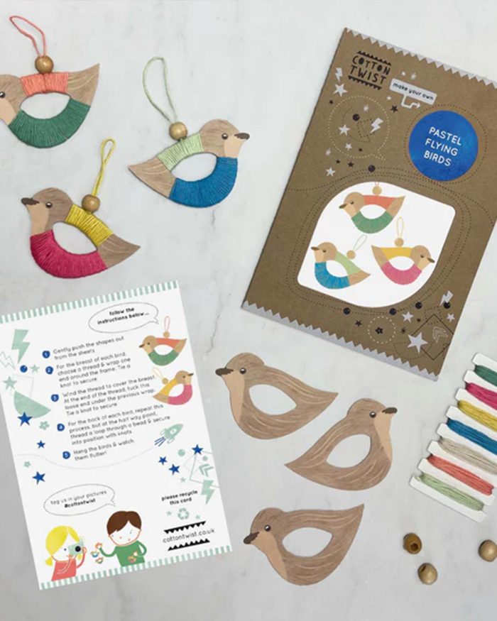 Perfect for three years & upwards, these pastel toned flying birds are sure to add a touch of sophistication & serenity to your Christmas decorations or home. Choose from the seven pastel coloured threads to create the pattern & design of choice. Add the natural coloured beads & hang into position.